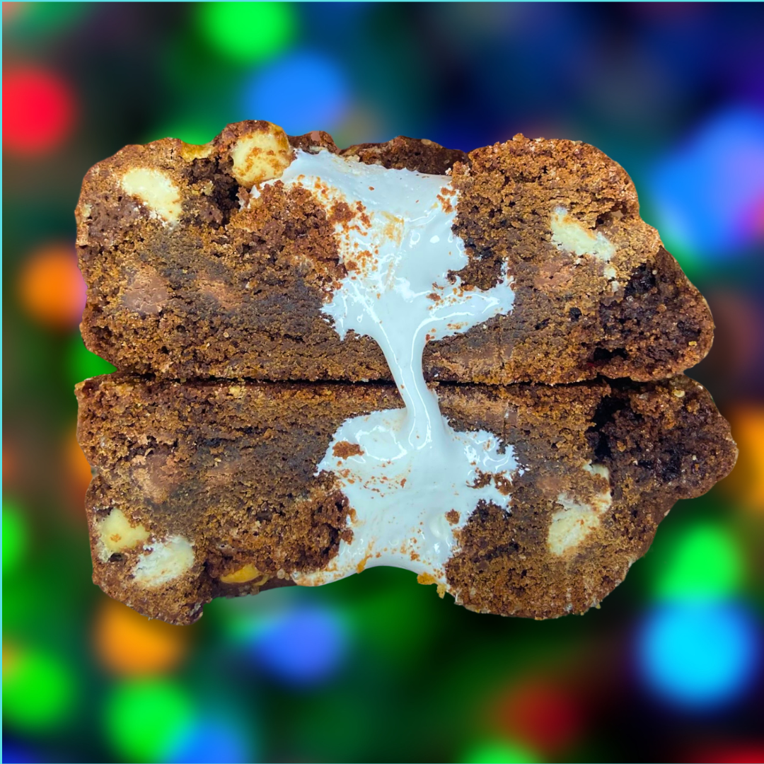 This Mexican hot chocolate inspired cookie starts with a rich chocolate base spiced with cinnamon, and bringing the heat with cayenne and chili powder, that will melt that ice cold heart of yours. Surrounded by a blizzard of hot cocoa and marshmallow morsels, and vanilla marshmallow bits, and buried inside is a gooey core of marshmallow fluff.